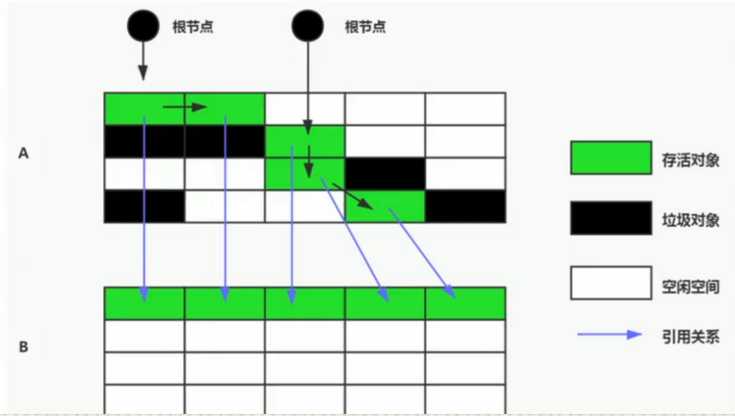 - 特别的: 如果系统的垃圾对象很多,复制算法很理想。因为复制算法需要复制的存活对象不多,效率就快,它适合于存活对象少,垃圾对象多的前提下。所以适用于新生代