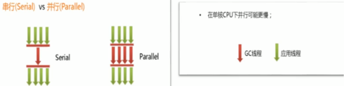 - 串行:暂停其他的线程(主要说其他的垃圾回收线程),只执行它自己的线程.