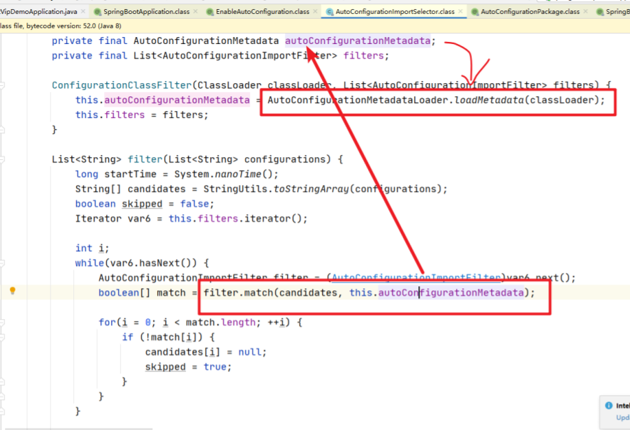 我们可以看到有具体的匹配方法 match。里面有个关键的属性是 autoConfigurationMetadata , 的本质是 加载的 META-INF/spring-autoconfigure-metadata.properties 的文件中的内容。