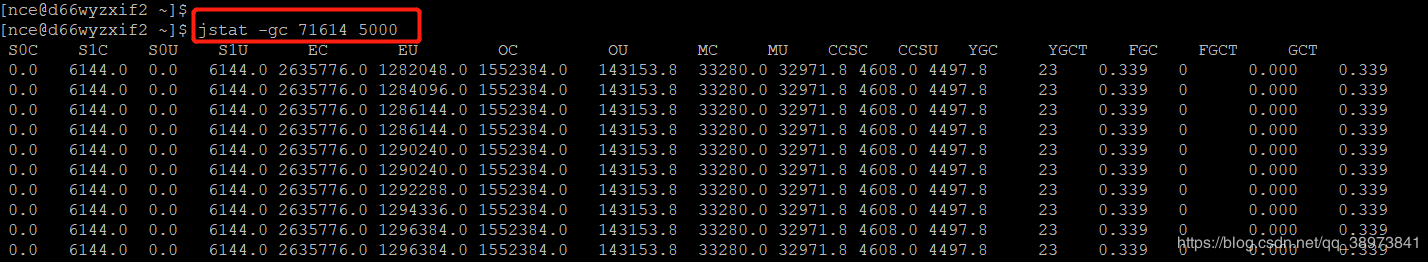 jstat -gc 71614 5000