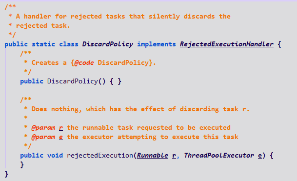 ThreadPoolExecutor.DiscardPolicy:丢弃任务,但是不抛出异常。