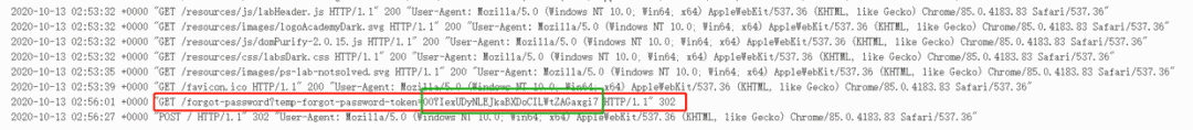 然后在我们自己的服务器上就可以通过访问日志看到被窃取的重置密码Token:
