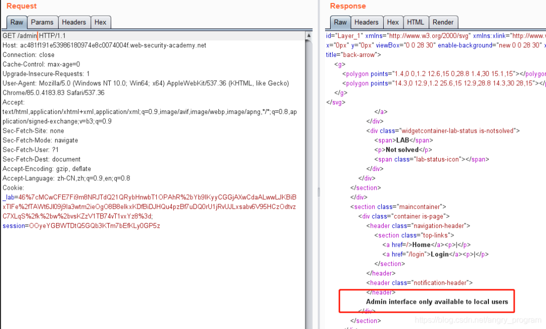可以错误信息提示,/admin 页面只允许本地用户访问。