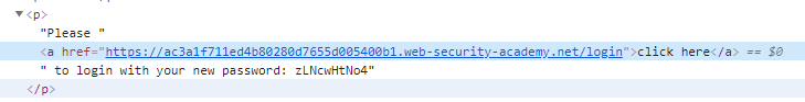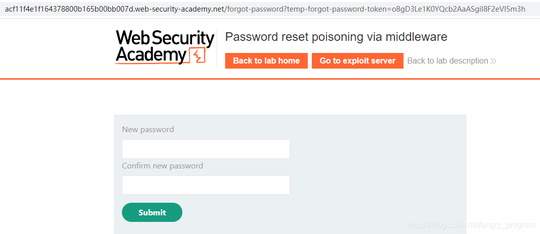 https://acf11f4e1f164378800b165b00bb007d.web-security-academy.net/forgot-password?temp-forgot-password-token=o8gD3Le1K0YQcb2AaASgiI8F2eVI5m3h