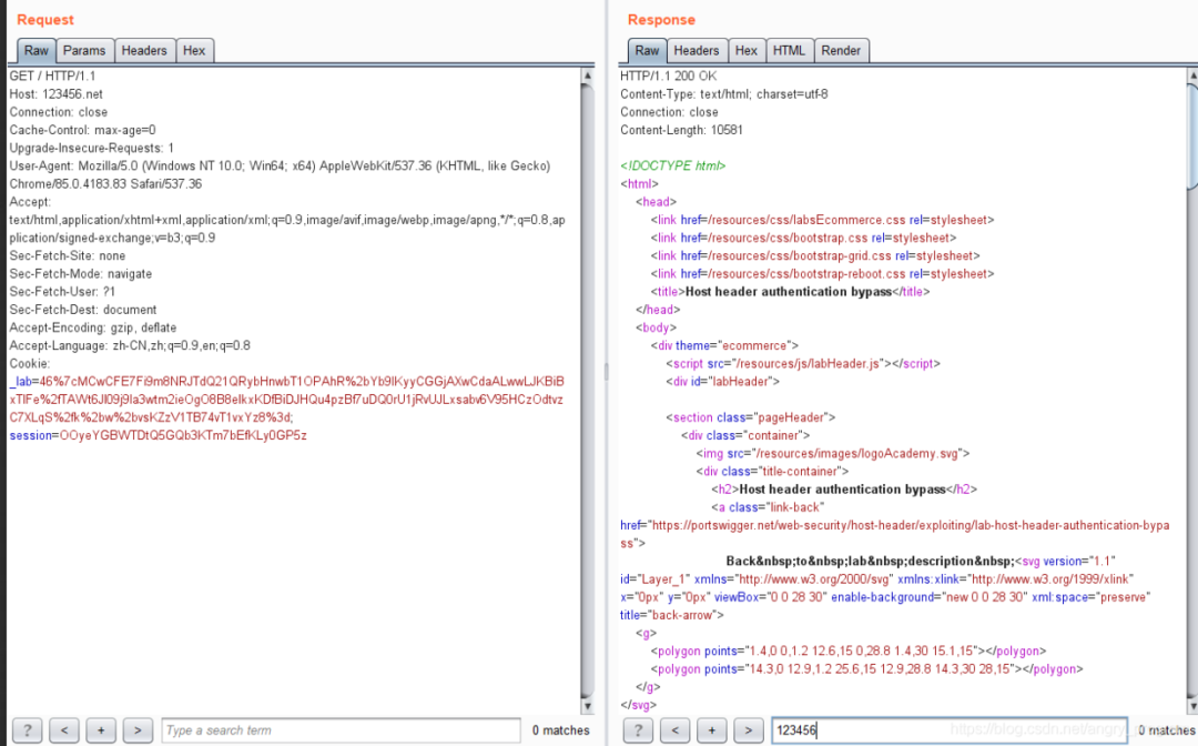 注意,这里的Host的值不会出现响应包中,但是依然可能存在Host头攻击,因为响应依然成功,说明服务端没有对Host头做验证。