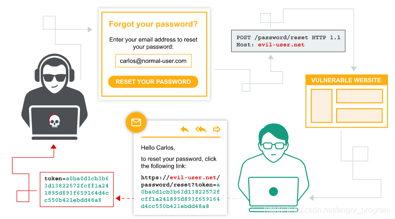 密码重置中毒是窃取此令牌以更改另一个用户密码的一种漏洞。