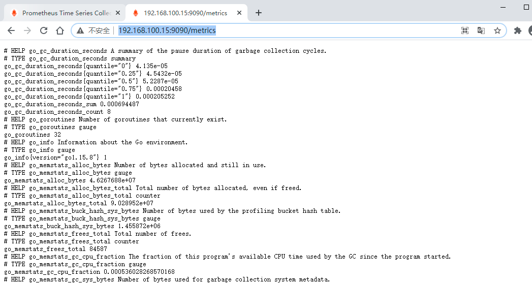 这个是以图形化的方式展示指标,通过localhost:9090/metrics查看也是一样的