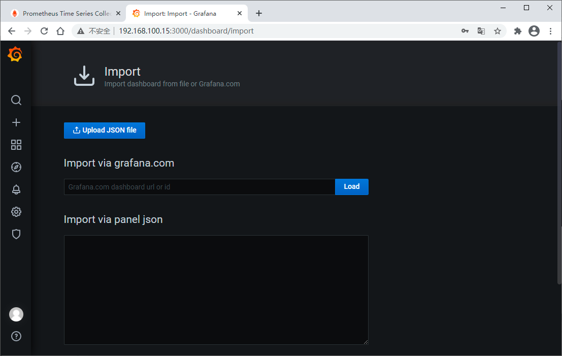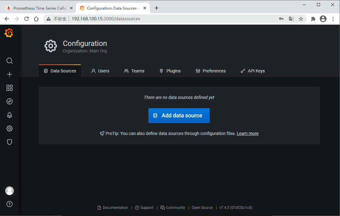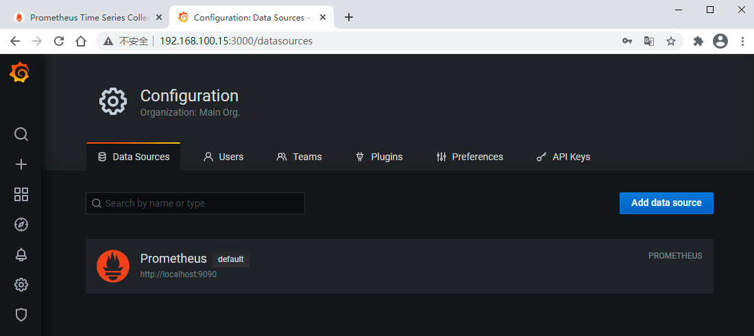 先配置一个数据源,一会儿添加仪表盘的时候要选择数据源的