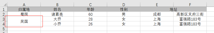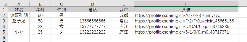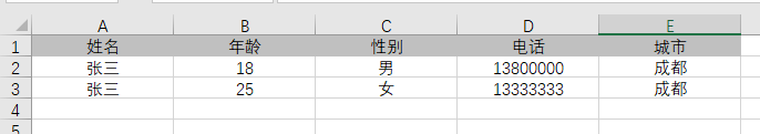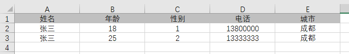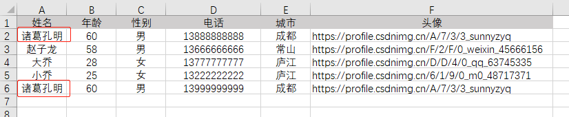 我们将诸葛孔明的电话,以及第4行的姓名去掉,进行测试。