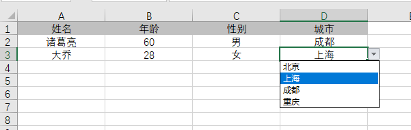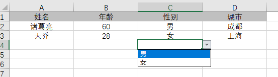 比如,当我们下载一个导入模版的时候,我们可以将性别,城市对应的列设置为下拉选择。