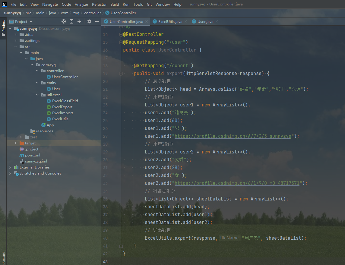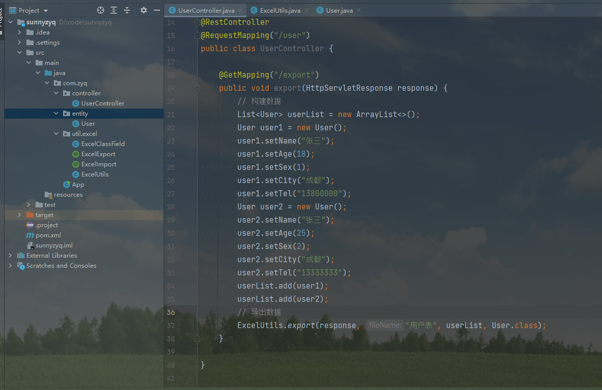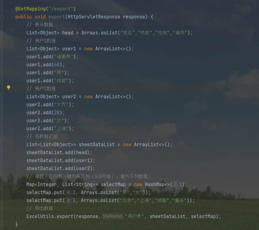 ExcelUtils.export(response,"用户表", sheetDataList);