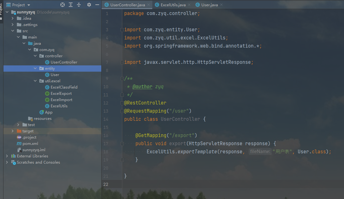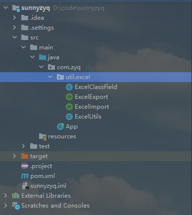 在做测试前,我们需要將【2. 环境准备】中的四个文件拷贝在工程里(如:我这里均放在了com.zyq.util.excel 包下)。
