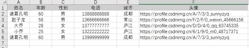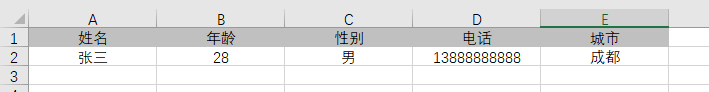 打开下载表格,我们可以看到,表中的数据和我们代码组装的顺序一致。