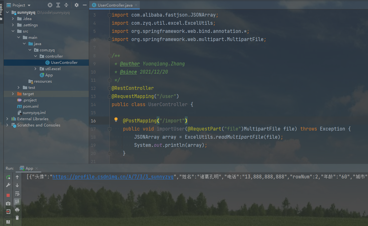 public JSONArray importUser(@RequestPart("file")MultipartFile file) throws Exception {