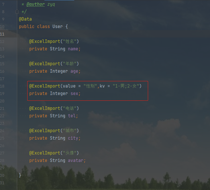 首先,你需要创建一个与导入表格对应的Java实体对象,并打上对应的Excel解析的导入注解,@ExcelImport注解的value则为表头名称。
