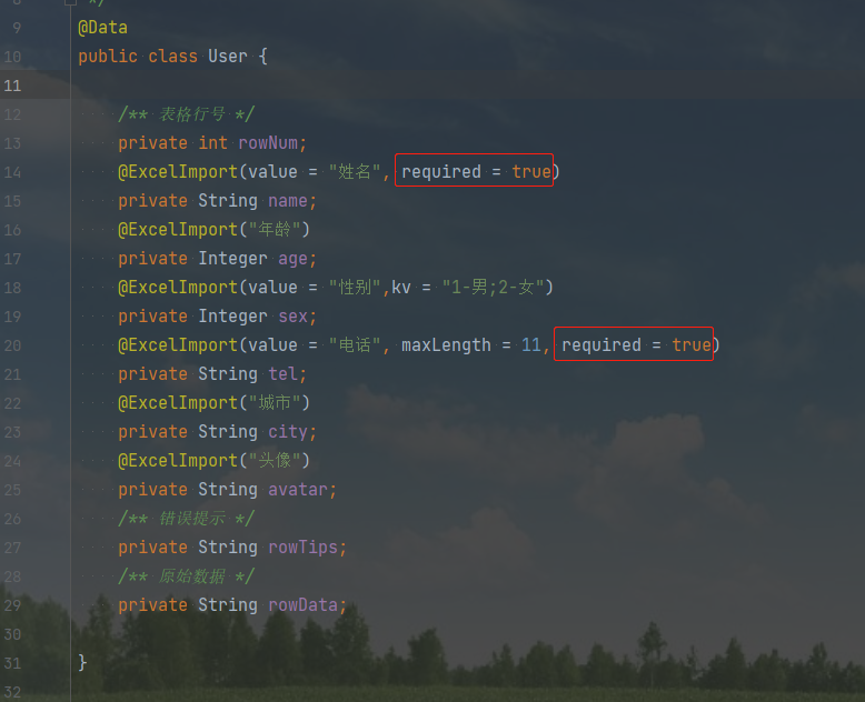 那么,我们只需要在 @ExcelImport 注解属性中,加上 required = true 即可。