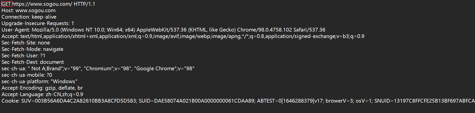 接下来我们来抓取搜狗首页的 HTTP 请求,抓取到的结果如下