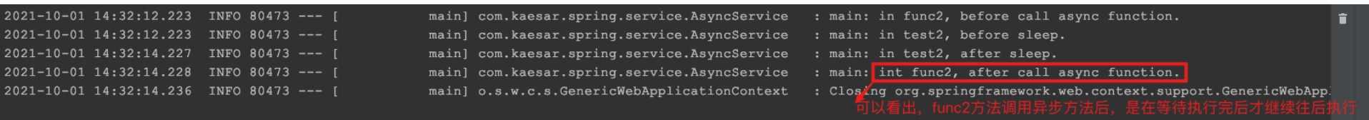 从执行结果可知,main线程中的func2方法在调用异步方法test2方法后,等待test2方法执行完后,才继续往后执行。