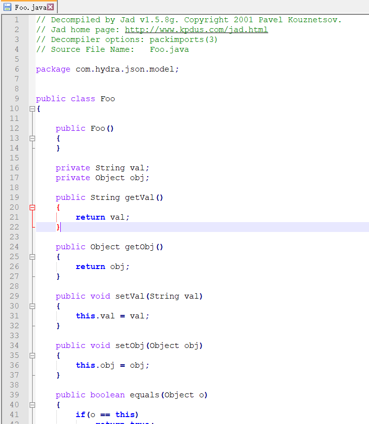 如果大家对泛型的类型擦除比较熟悉的话,就会知道在编译完成后,其实在类中是没有泛型的。我们还是用Jad反编译一下字节码文件,可以看到没有类型限制的T会被直接替换为Object类型: