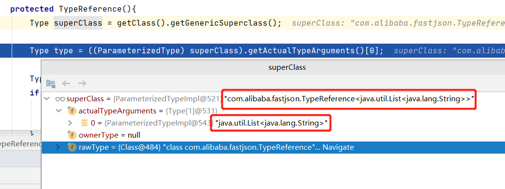 别着急,让我们接着往下看,如果你在TypeReference的无参构造方法中加了断点,就会发现代码执行中会再调用一次这个构造方法。