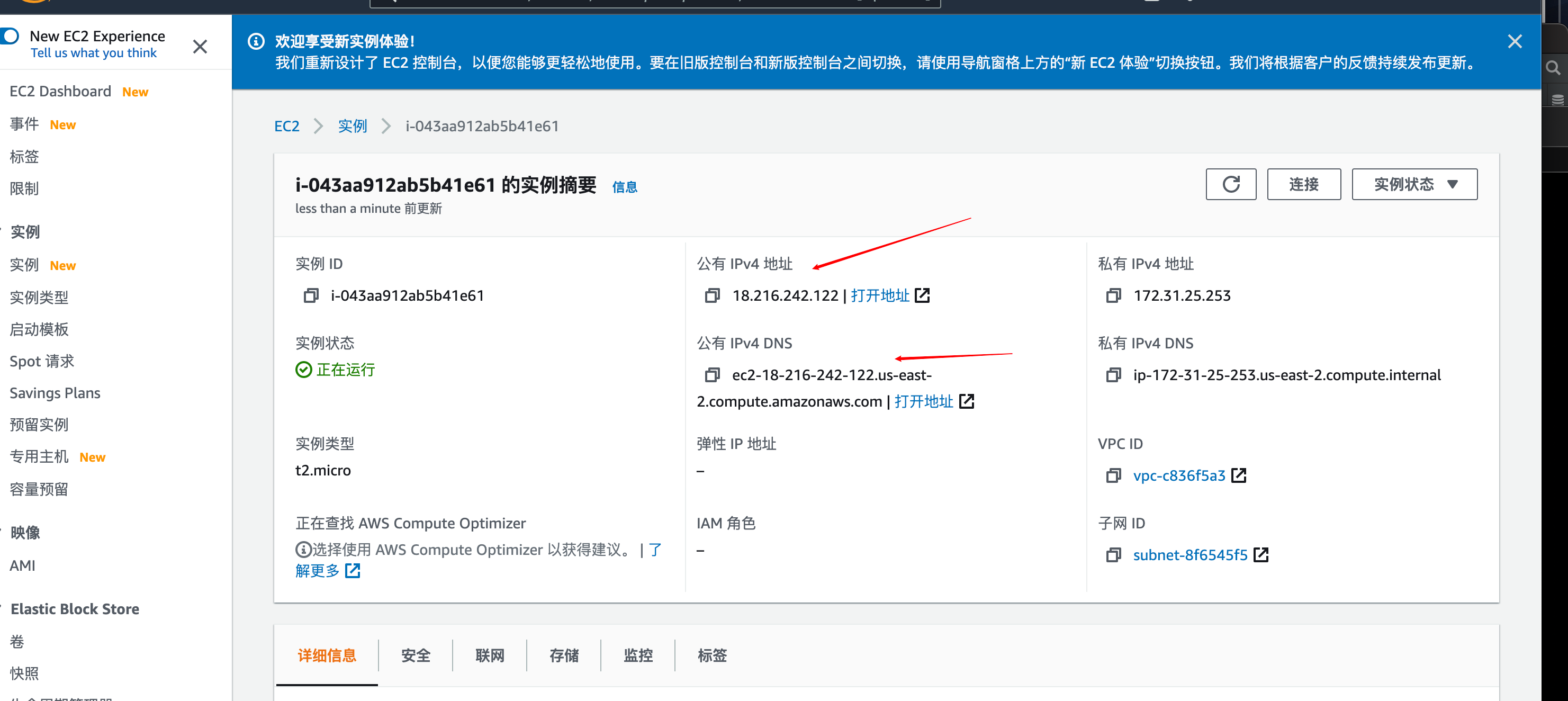 可以在控制台看到这台服务器,再次点击实例的ID