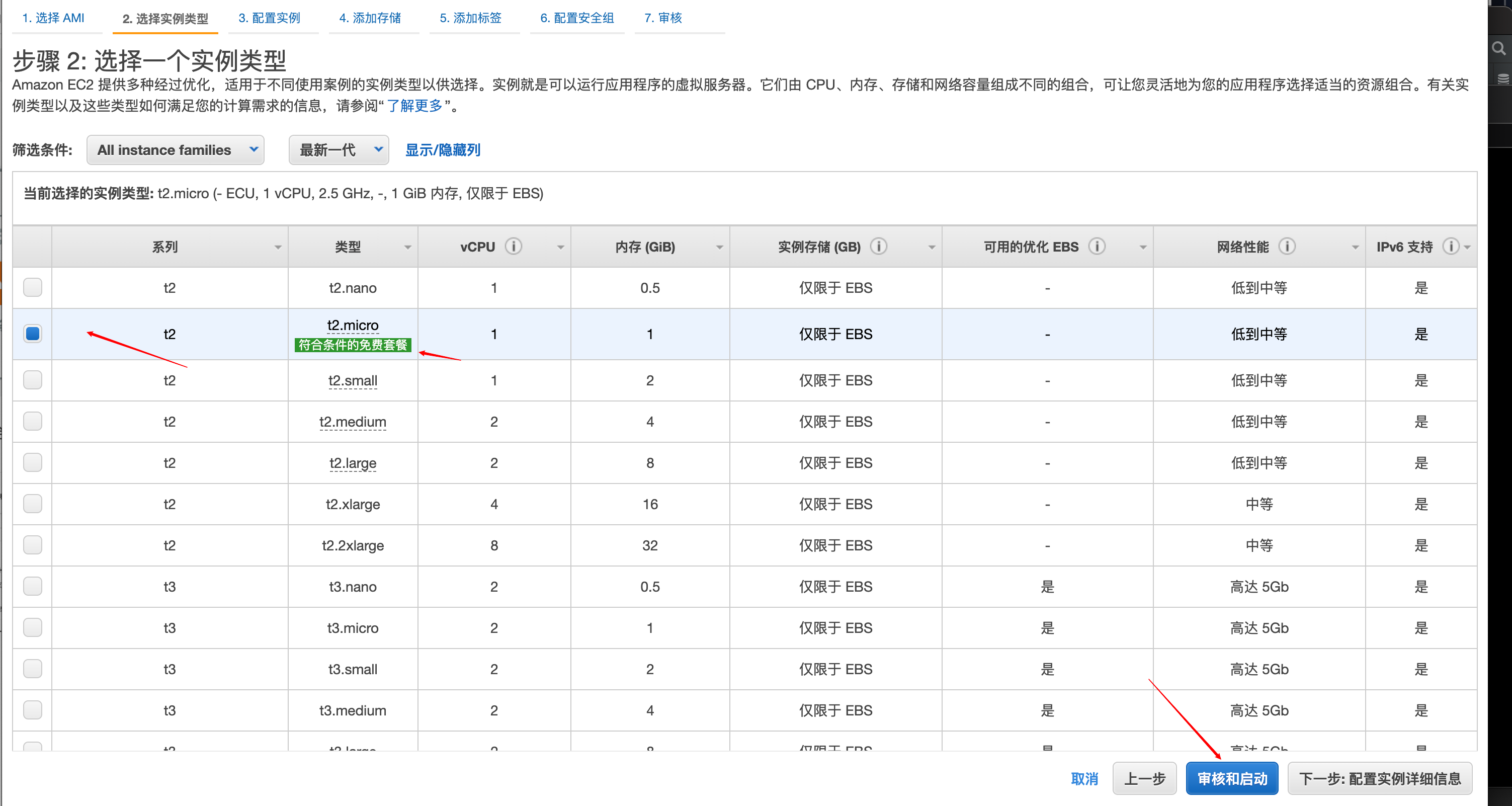 点击审核与启动,入门使用先不要配置太多,以后都会讲解如何配置,注意选择免费的配置 1核心1G内存的