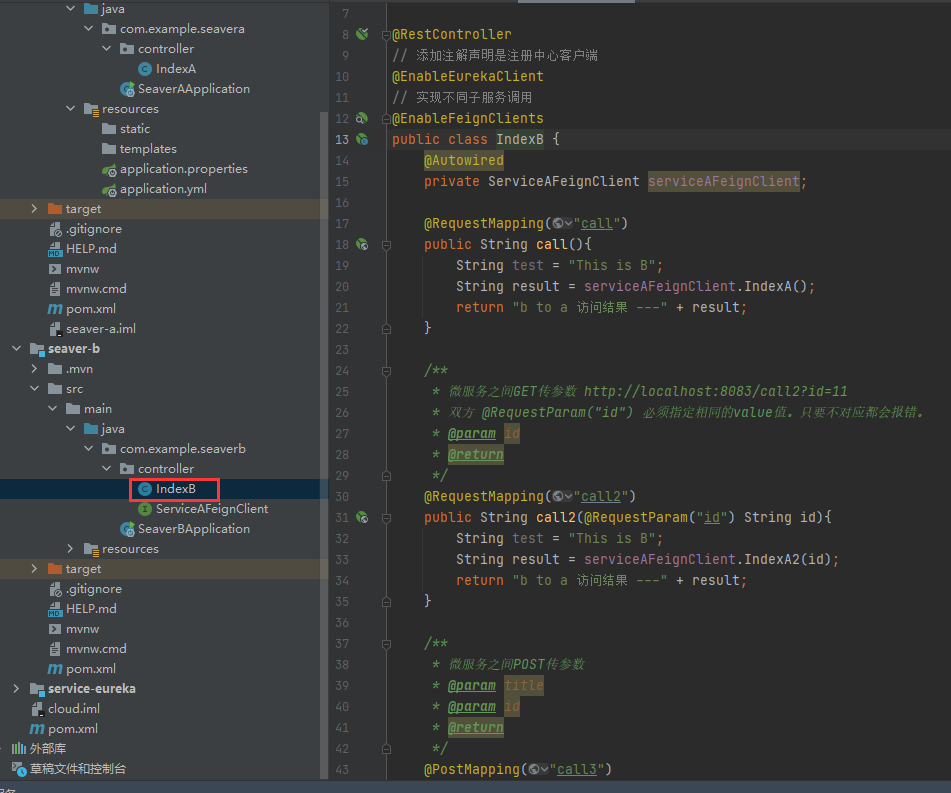 在微服务b中, 创建一个ServiceAFeignClient接口: