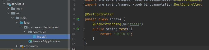 public interface ServiceAFeignClient { //路由名"testA"对应控制器IndexA的方法的路由名 例:此外对应是的IndexA @requestMapping("testA")