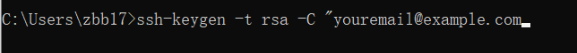 "youremail@example.com"改为自己的邮箱即可,途中会让你输入密码啥的,不用管,一路回车即可,会生成你的ssh key。(如果重新生成的话会覆盖之前的ssh key。)