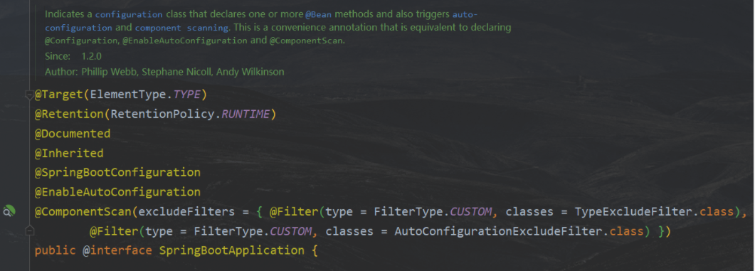 @SpringBootApplication放在项目的一个启动类上,用来把启动类注入到容器中,用来定义容器扫描的范围,用来加载classpath环境中一些bean。