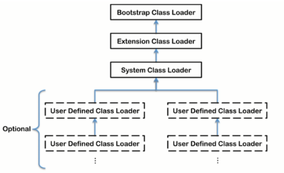 所以具体为引导类加载器(BootstrapClassLoader)和自定义类加载器(包括ExtensionClassLoader、Application ClassLoader(也叫System ClassLoader)、User Defined ClassLoader)。