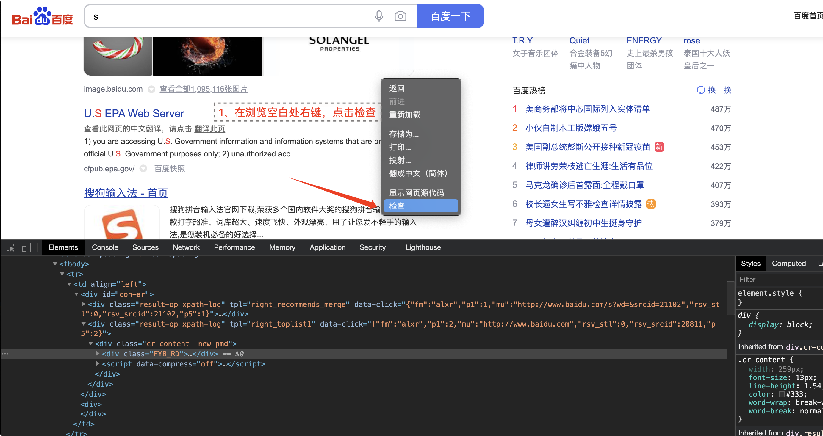 我们使用爬虫就是需要在网页中提取我们需要的数据,接下来我们来学习抓取一下百度搜索页的热榜数据