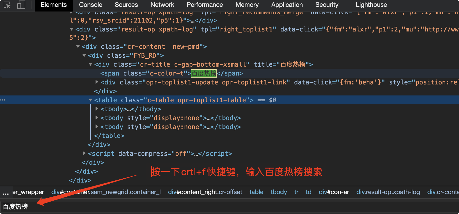 我门需要看一下热搜排行榜的标签元素在哪里