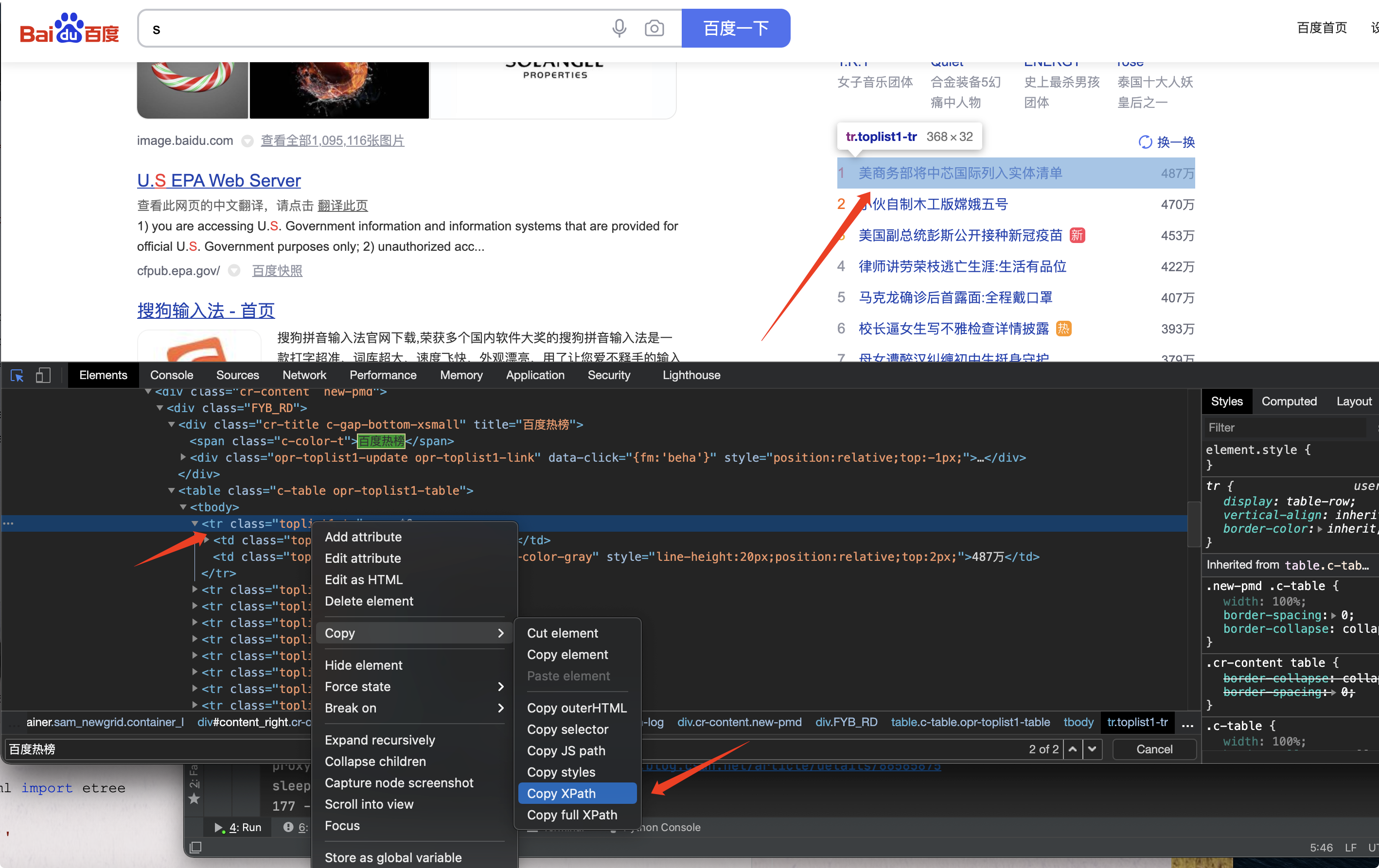 找到第一条 右键复制 XPath (后边说XPath是什么)