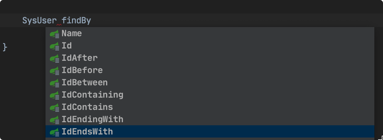 //方法名称必须要遵循驼峰式命名规则,findBy(关键字)+属性名称(首字母大写)+查询条件(首字母大写)